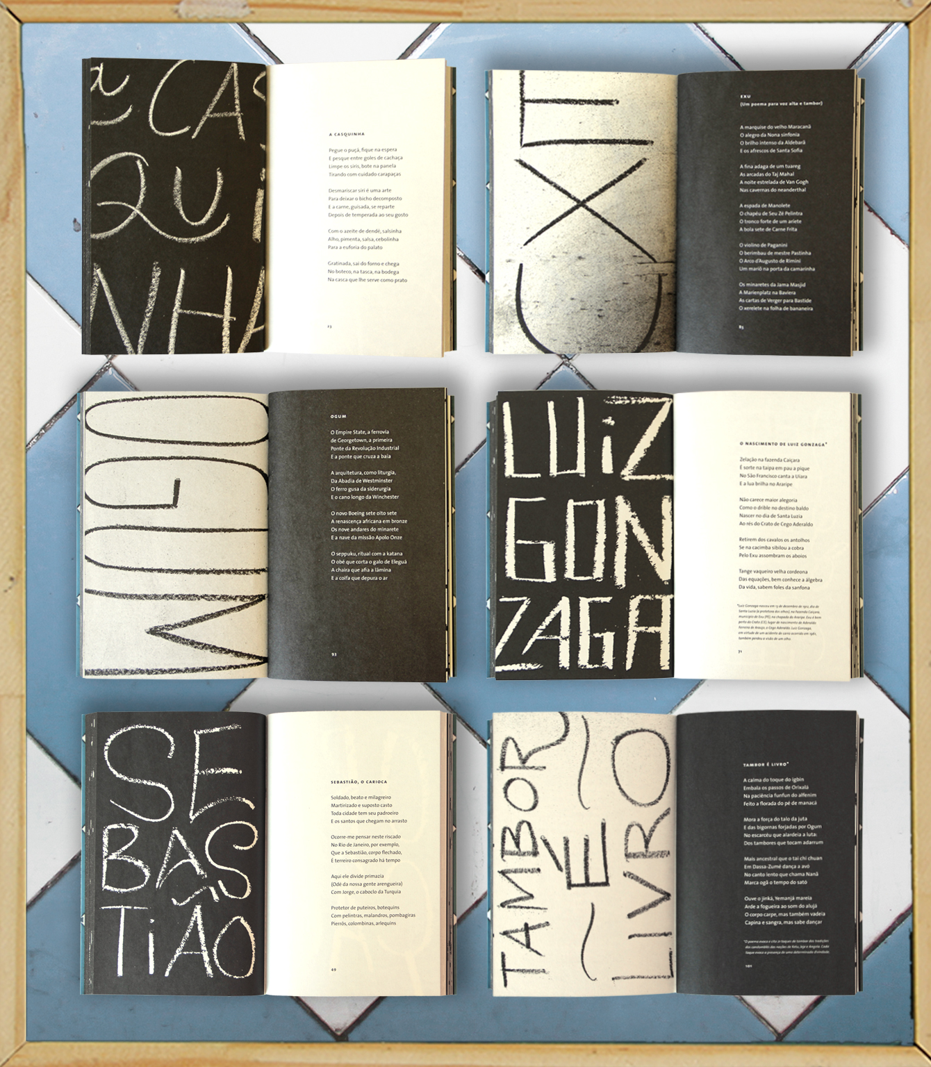 “Trabalho numa editora grande, de natureza comercial, onde as tiragens são altas e tudo é em grande escala. Mesmo assim, sempre vai existir espaço para o risco, para a ousadia, para o atrevimento, que é o que chama a atenção no final das contas”, explica ele, citando como exemplo outro livro de Simas, “O corpo encantado das ruas”. “A sugestão que recebi era para fazer algo com uma esquina, uma encruzilhada ou qualquer coisa que tivesse relação com o Centro do Rio. Mas depois de olhar o livro, percebi que não era aquilo. Vi que tinha que ser algo com um valor simbólico, que representasse a cultura do subúrbio do Rio, com caráter religioso. Foi quando tive a ideia do saquinho de Cosme e Damião.”