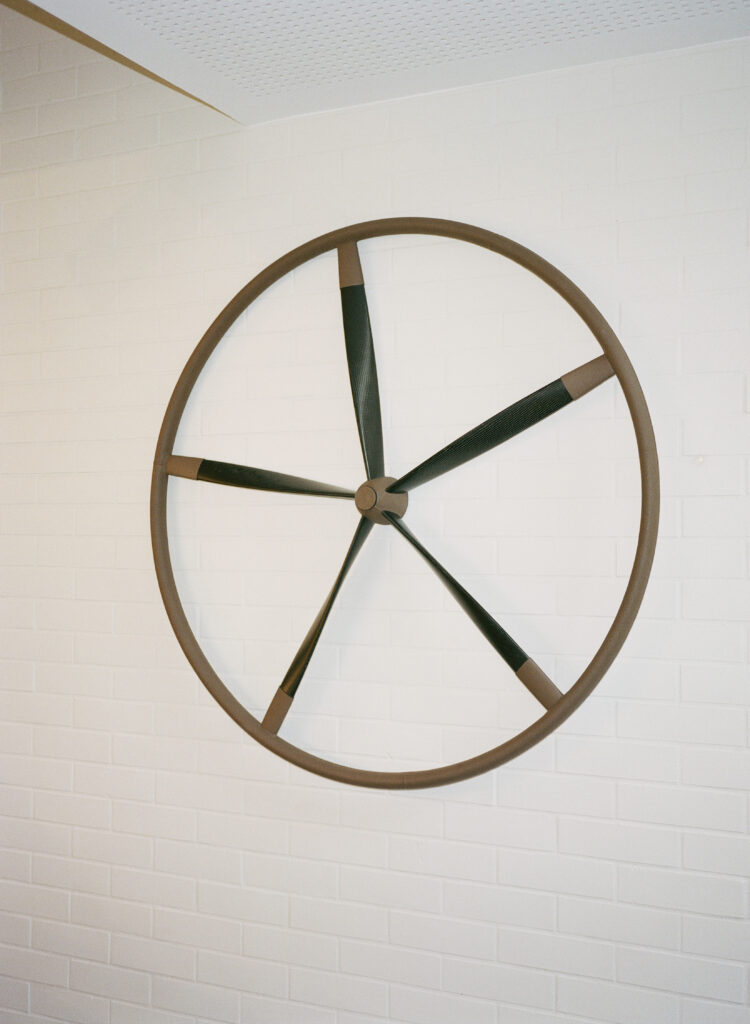 “Tive que aprender sobre couro. Não sabia nada sobre isso. É engraçado, porque o couro nos barcos historicamente era usado mais para proteção. Nos barcos do início do século XX, todos os blocos eram protegidos com couro. Couro grosso e resistente. Não era ornamental.”