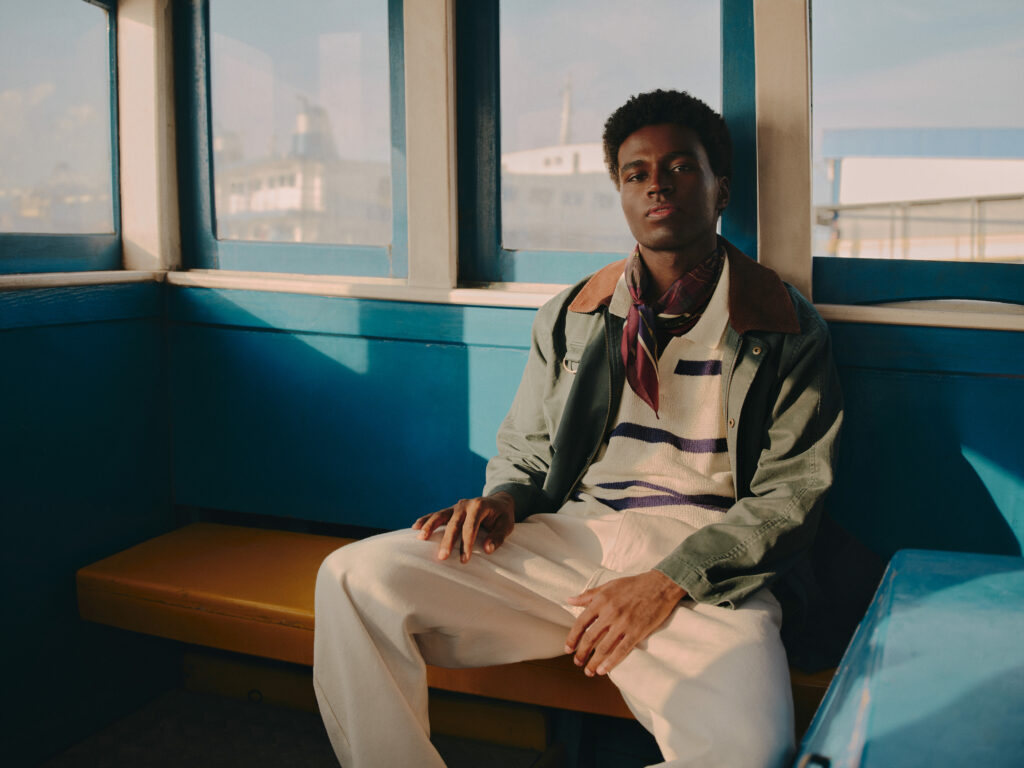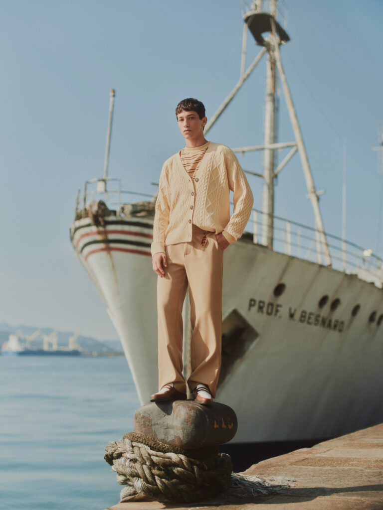A nova collab entre Hering e Welcome Sunny Garments traduz a proposta para o armário masculino com peças-chaves para montar um look alinhado com o estilo da vez. A base respeita um estilo clássico básico, com detalhes que reforçam a estética fisherman. A polo de manga comprida é listrada e segue a paleta navy (azul marinho e branco); a jaqueta utilitária com muitos bolsos, tipo parka, volta forte neste armário; nos pés, a aposta é o mocassim estilo boat shoes, que já estamos vendo aparecer nas passarelas — Miuccia Prada, fala oi! — desde o ano passado e os tricôs sobrepostos às golas da polo amarram o look.