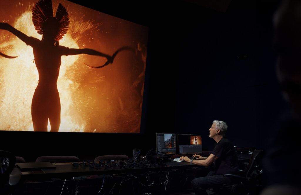 “Un espresso?”, pergunta Cameron em um italiano surpreendentemente fluente ao nos receber em uma sala de reuniões forrada de esboços e pôsteres de sua juventude. Ele se senta, pronto para falar sobre seu novo filme, natureza, tecnologia, Hollywood e o que vem pela frente.
