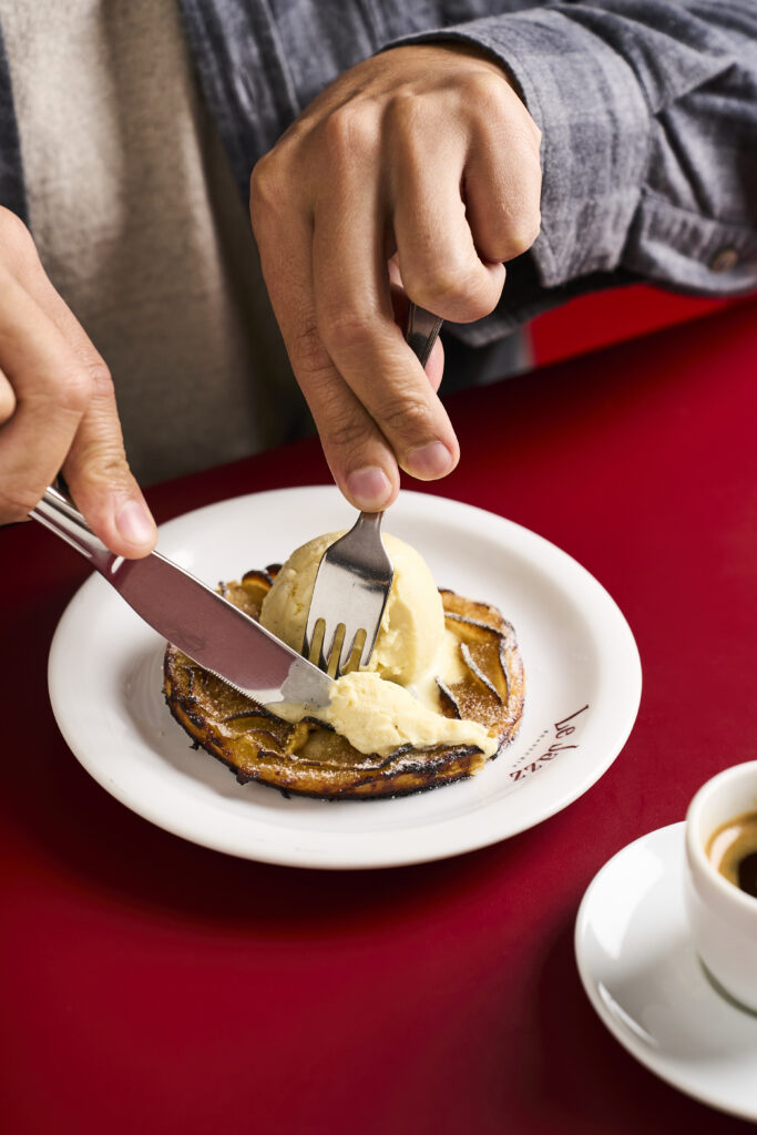As sobremesas, parte fundamental da cozinha francesa, também entram no clima de renovação — com novas receitas e versões repaginadas de clássicos que o público adora. É o caso da nova torta de maçã da casa, mais fininha e bem crocante, a Tarte Fine aux Pommes (R$34, foto), montada em massa folhada coberta com lâminas de maçã verde, servida ainda quente com uma bola de sorvete artesanal de baunilha por cima.