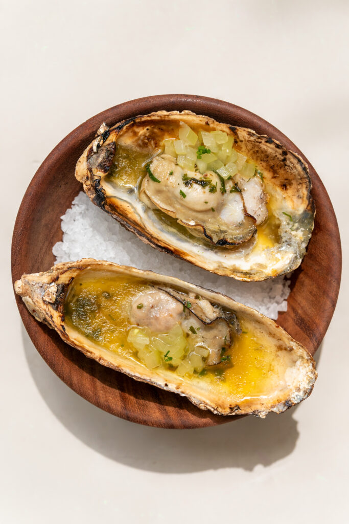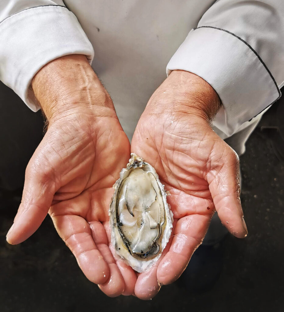 “Quanto mais fresca, melhor. As ostras devem ser consumidas o mais rápido possível após a colheita. No Resid, assim que elas chegam, são armazenadas em geladeira com camadas generosas de gelo, que são trocadas diariamente. Essa rotina garante que elas permaneçam vivas, frescas e seguras para o consumo.”