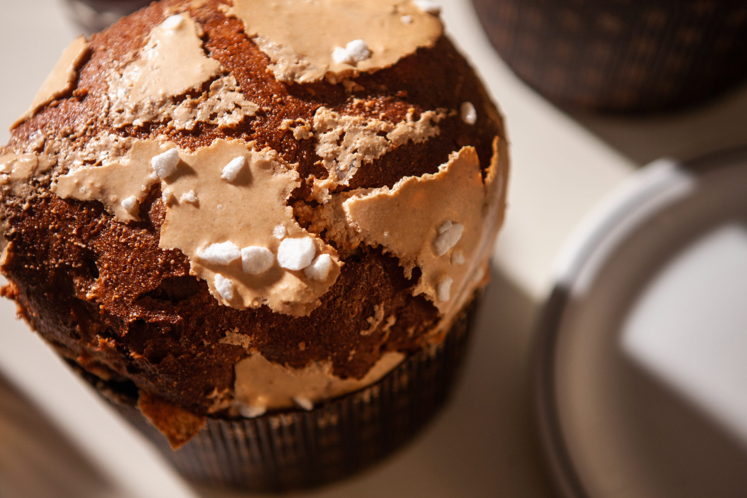 Recheio: Tem pedaços de chocolate, frutas cristalizadas e um toque de amêndoas em cima, dando refinamento para o sabor.