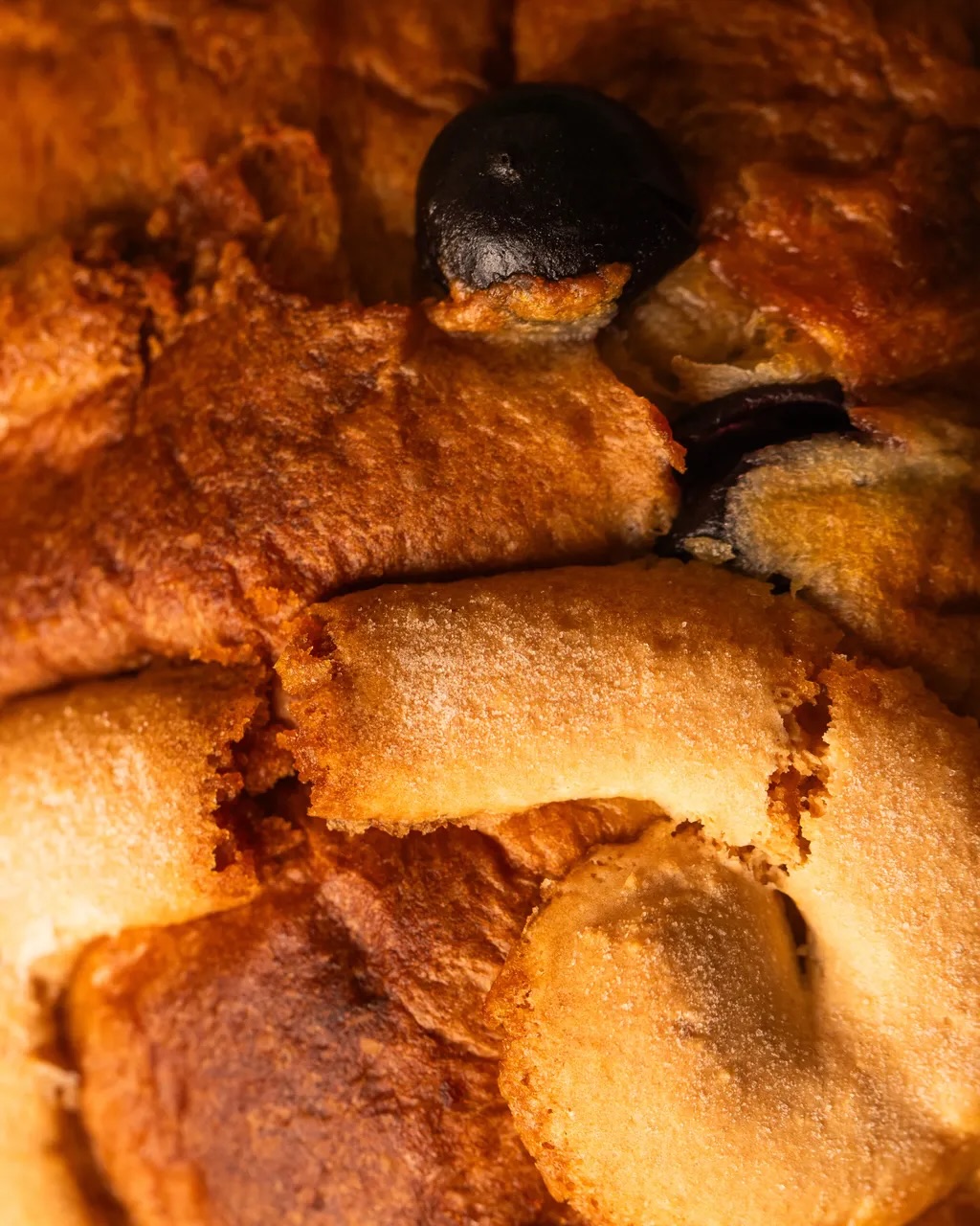 Recheio: A compota de jabuticaba é distribuída como frutas secas, não como “recheio de geleia”. A quantidade é equilibrada e a acidez tem um ótimo constraste com a massa.