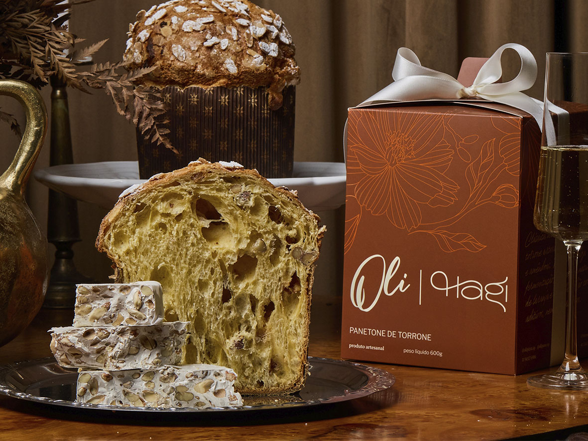 Recheio: Torrone de mel silvestre com amêndoas, vem recheado em todo o panetone. Cada mordida você sente o torrone e as amêndoas que dão uma crocância especial à massa.