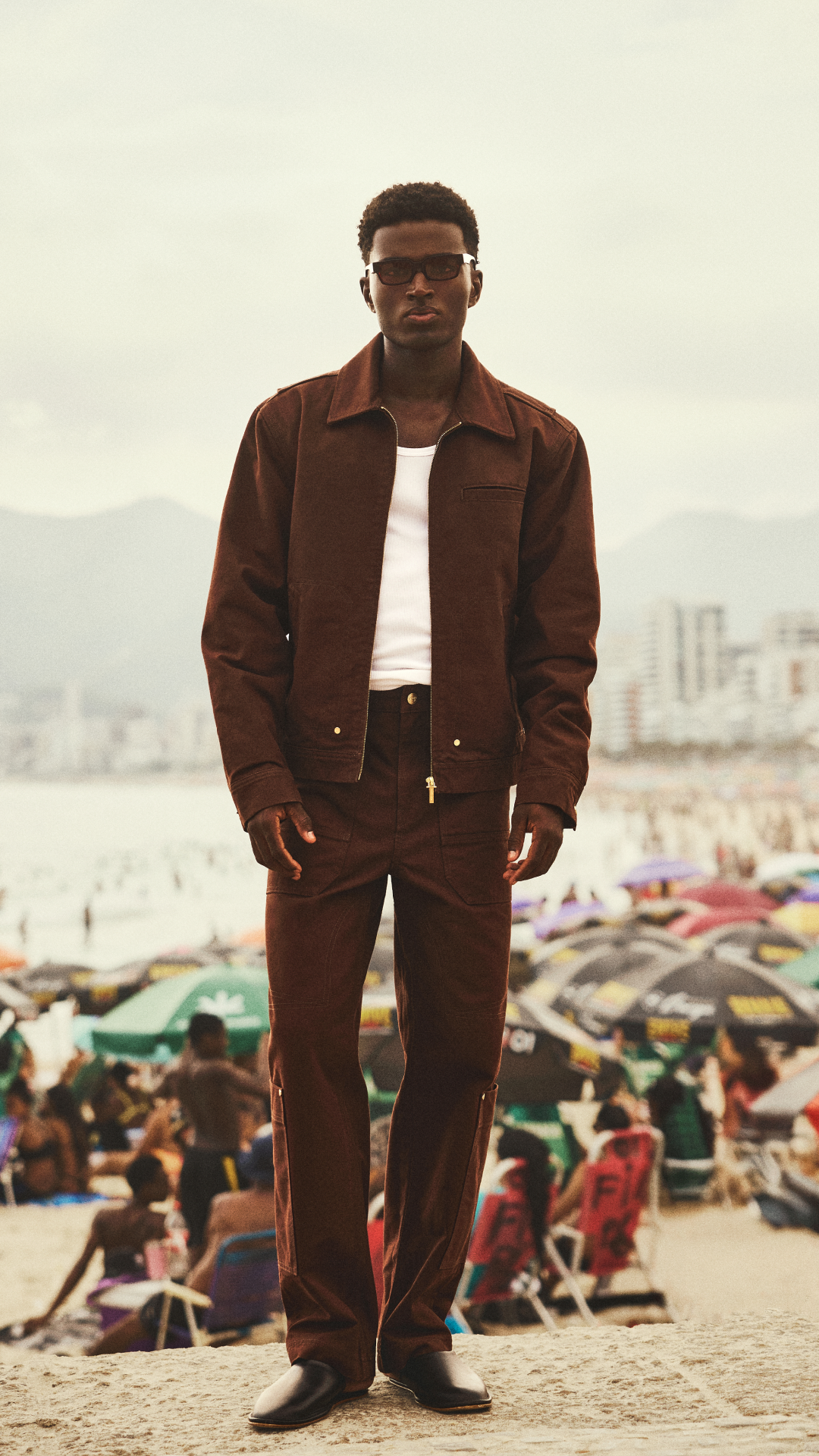 Vamos ao que interessa. O novo guarda-roupa masculino da Cult Gaia é focado na leveza. Tem alfaiataria descontraída, com peças em linho e algodão, outerwear com bordados trabalhados, jaquetas, além de camisas e shorts com estampas praianas saturadas. O denim também ganha destaque na pegada workwear, com corte de cintura alta, pespontos visíveis e bolsos oversized.