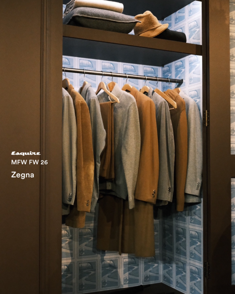 Foi com essa mensagem que Alessandro Sartori, diretor artístico da Zegna, recebeu os convidados de volta em Milão para apresentar a coleção de inverno de 2026, após último desfile em Dubai. Nesse armário, uma homenagem às roupas de família que atravessam gerações: principalmente a de Ermenegildo Zegna que está, atualmente, em sua 4ª geração.