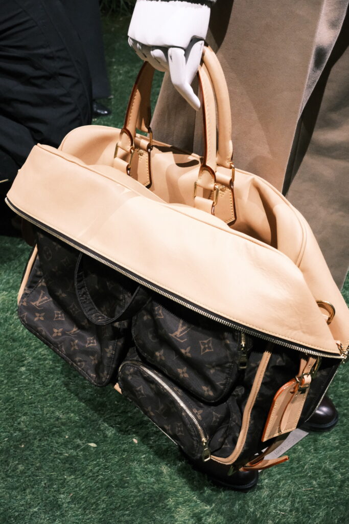 LV SILK-NYLON: pela primeira vez, o Classic Monogram é tecido em sarja com 51% de seda e 49% de nylon reciclado, resistente à água e com efeito que se assemelha ao couro